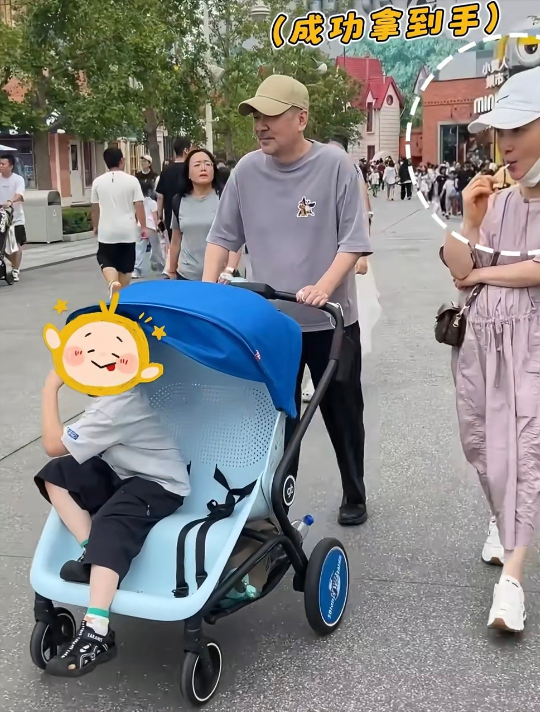 然后就是一家三口在一起的镜头,陈建斌不知道为啥高兴得合不拢嘴,看得出陈建斌对儿子是多么的宠爱,7岁儿子走路走累了,直接用小车推着儿子走,然后老婆在身边陪着,这状态,谁看到不羡慕呀,怪不得陈建斌这么高兴呀。